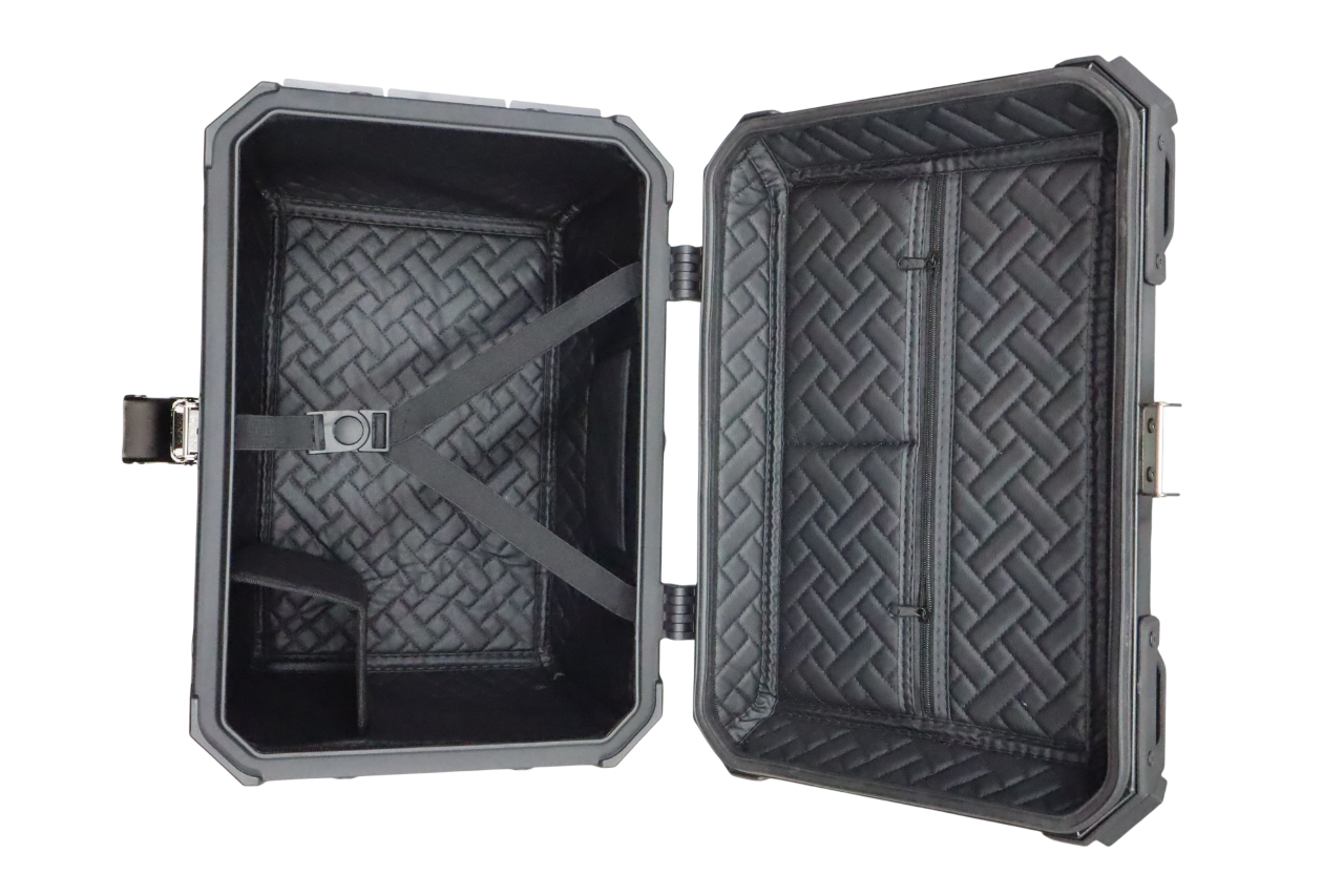 Crafted from high-quality aluminium with a tough black finish, this top box is designed to handle long rides, city commutes, and rough touring conditions with ease.